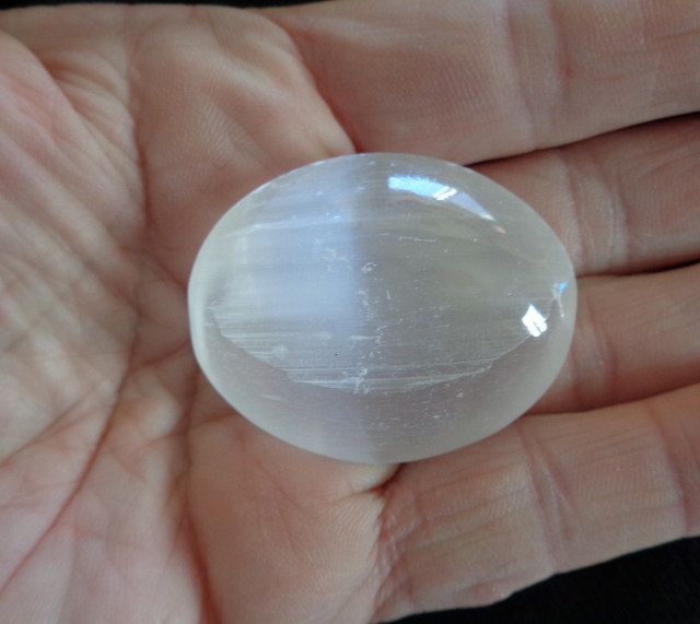 Selenite: This stone is worn to re-energize the body. Selenite promotes serenity, purification, peace, meditation and universal consciousness. Brings clarity of thought and is a stone of truth and integrity, spirituality, psychic development, forgiveness and positive thoughts. Ideal crystal for aura cleansing.