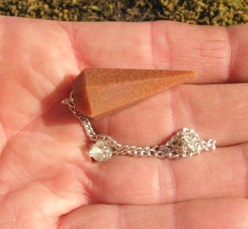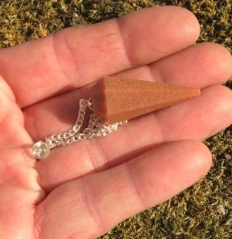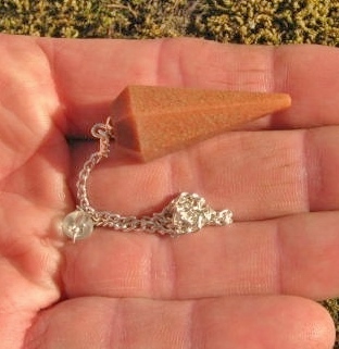 Peach aventurine pendulum measures 9 1/5 inches long.
